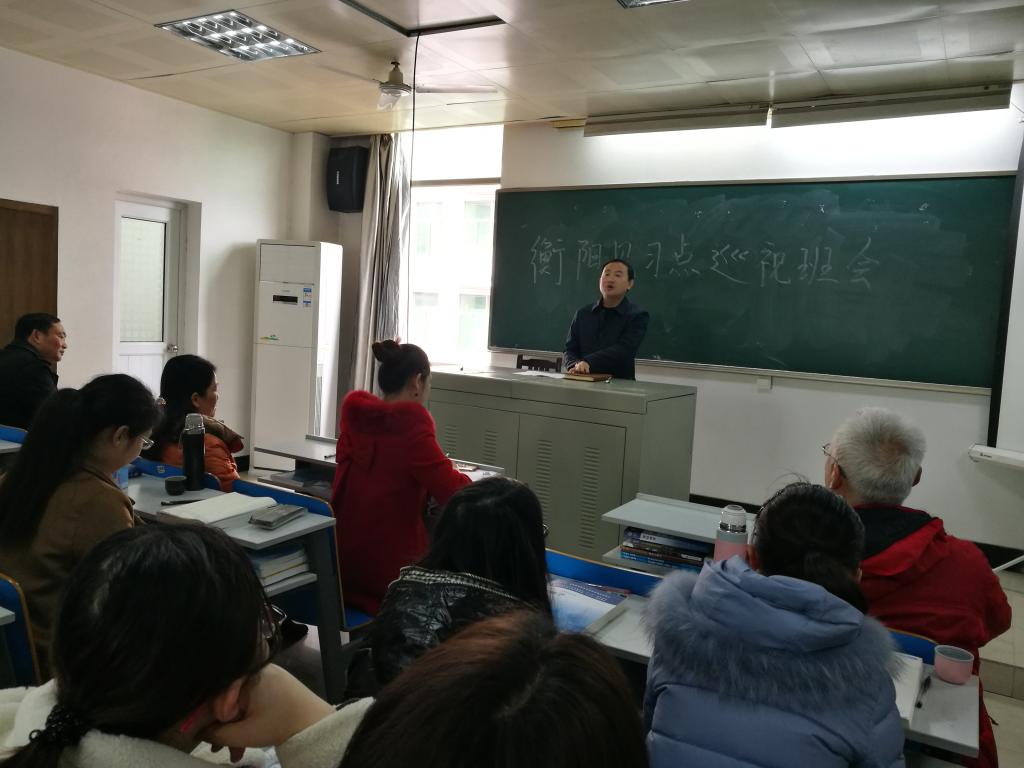 2018年2月28日上午,院长谢辉、党委副书记毛芳武、大学教务处实习科科长余炼及学院相关科室负责人赴衡阳市中医院巡视,对临床教学点课程进行了旁听督导评估,与见习点师生进行了充分地沟通交流,并召开了“如何更好的促进学风建设”的主题会议,会议由学生科李佩老师主持,衡阳中医院科教科全体老师及2014级中医9班全体同学参加了会议。