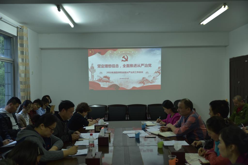 4月13日,湘杏学院召开2018年全面从严治党工作会议,认真学习党的十九大关于全面从严治党的战略部署,传达大学全面从严治党工作会议精神。学院全体教职工及部分学生党员代表参会。会议由学院党委副书记毛芳武主持。