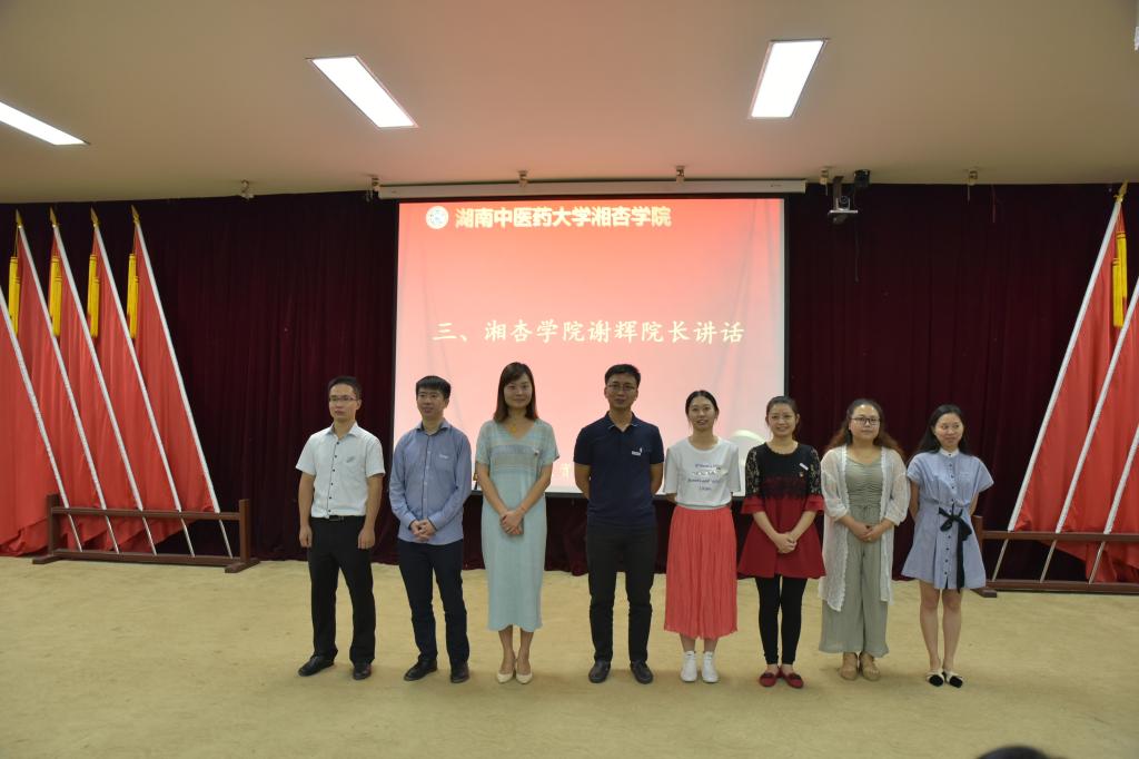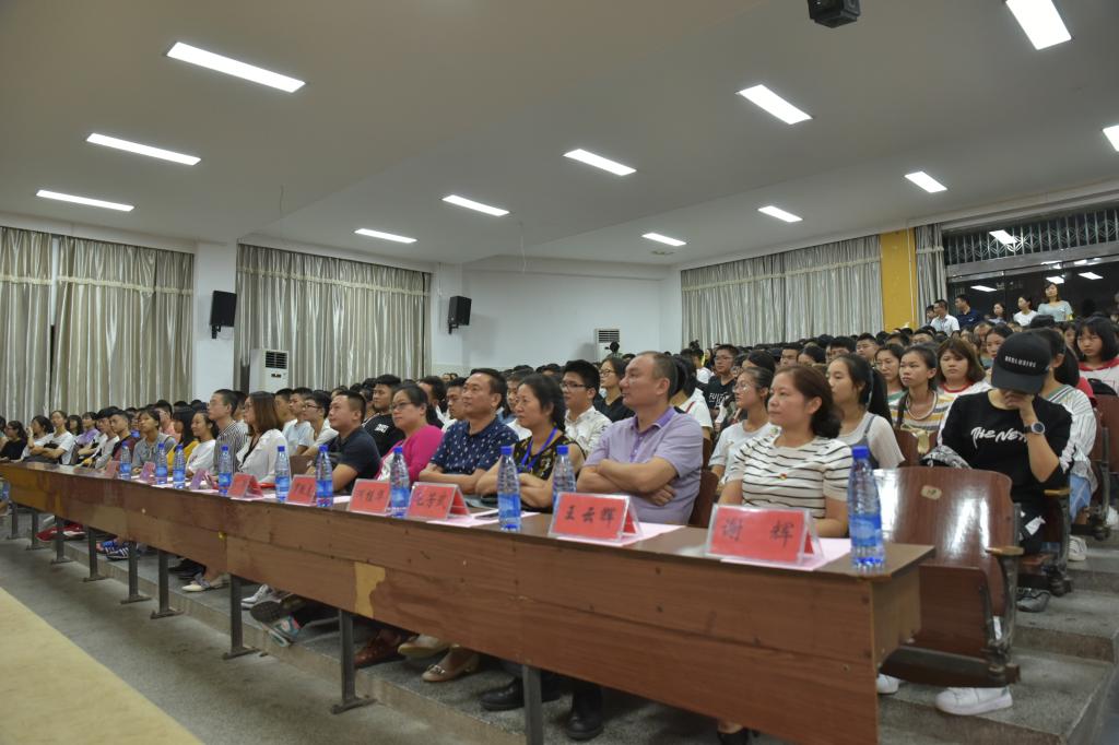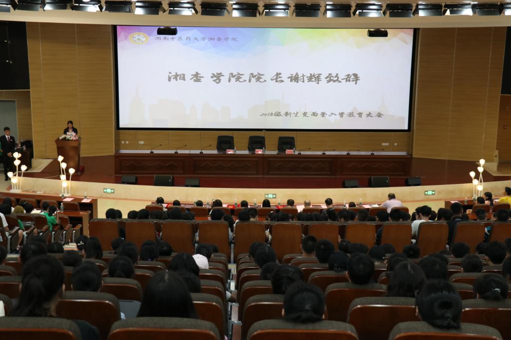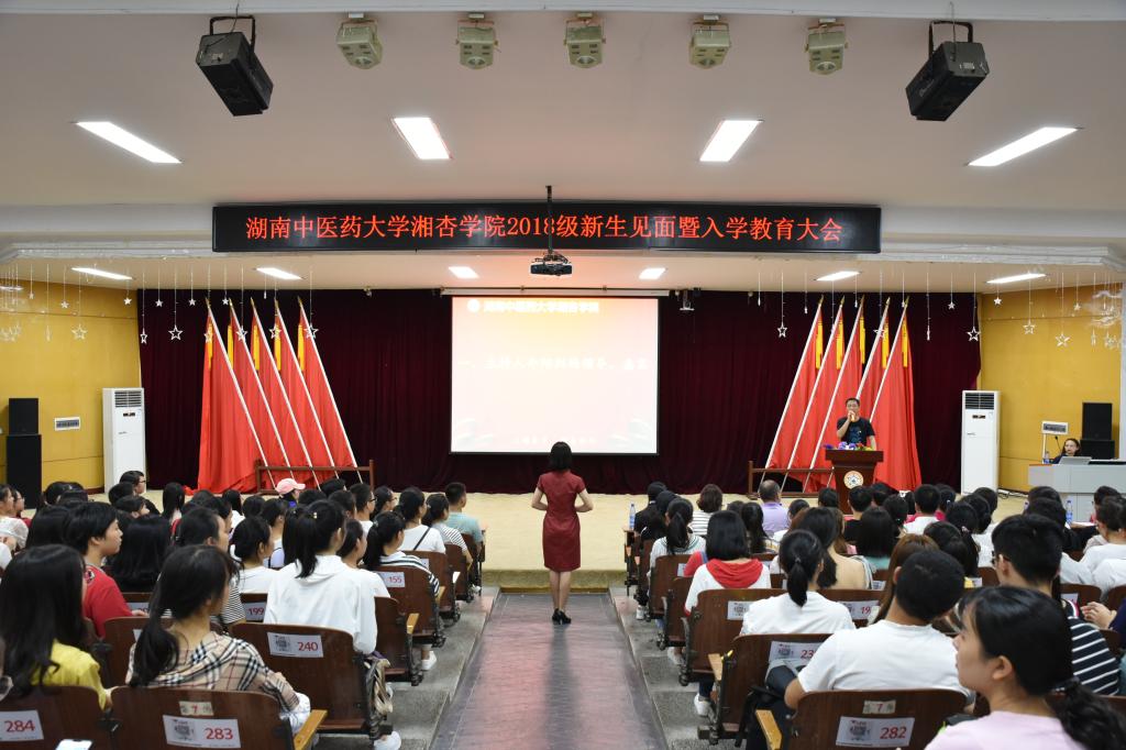 为增进新生对湘杏学院的了解,加强学院归属感和凝聚力, 9月8日晚,湘杏学院2018级新生见面及入学教育大会分别在东塘学术报告厅、含浦第三教学楼报告厅举行。湘杏学院院长谢辉、党委书记王云辉、党委副书记毛芳武、各科室负责人、学生科全体老师及新生兼职班主任参加了此次活动。活动由学生科科长刘瑞斌主持。