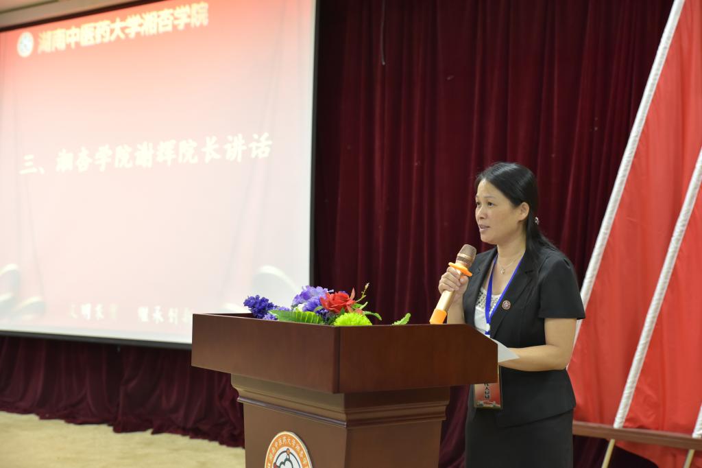 在主持人幽默风趣的开场白中,见面会正式拉开帷幕。首先,院长谢辉致辞,她代表学院全体师生对2018级新生表示了热烈的欢迎,她指出,学院将以优质的教学平台和优良的教学条件,培养对社会有用的中医药人才,她提出三点希望:首先,要学会做人;第二,要志存高远;第三,要不忘初心。在今后的大学生活中务必做到自省、自立、自强。