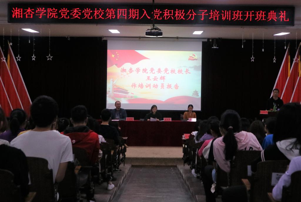 湖南中医药大学湘杏学院党委党校第四期入党积极分子培训班开班典礼圆满结束。举办入党积极分子培训,旨在培养政治上积极向党组织靠拢,思想进步、热爱学习、品德优良的学生加入到党的组织中来,为优秀的青年、学生实现加入党组织提供一个学习、交流的平台,同时也是为入党积极分子进一步了解我党的优良传统、作风、工作纪律、党员的权利和义务、党员作用发挥提供一个主要的学习渠道。激发入党积极分子对党的热爱,端正入党动机,坚定入党决心,树立正确的世界观、人生观和价值观,争取早日加入中国共产党。