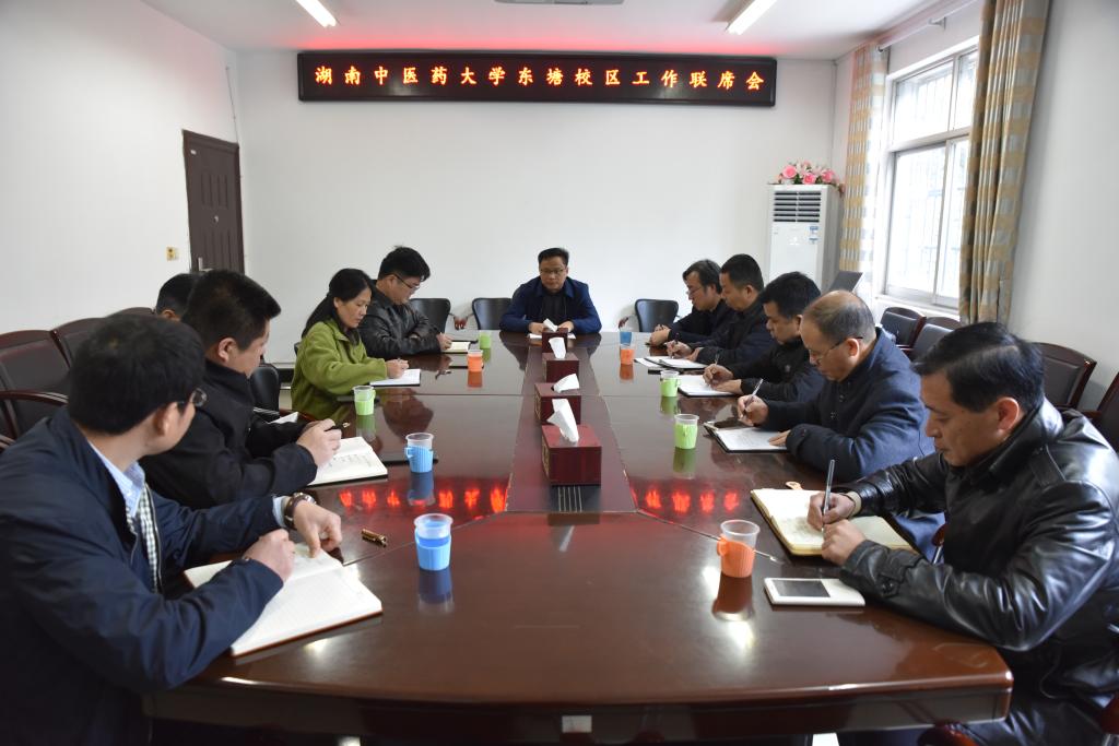3月25日上午,2019年第二次东塘校区工作联席会在湘杏学院会议室召开,会议由大学党委委员、副校长易刚强主持,湘杏学院、继续教育学院、后勤服务总公司、保卫处、离退休处、科技开发公司等部门相关负责人参加了会议。