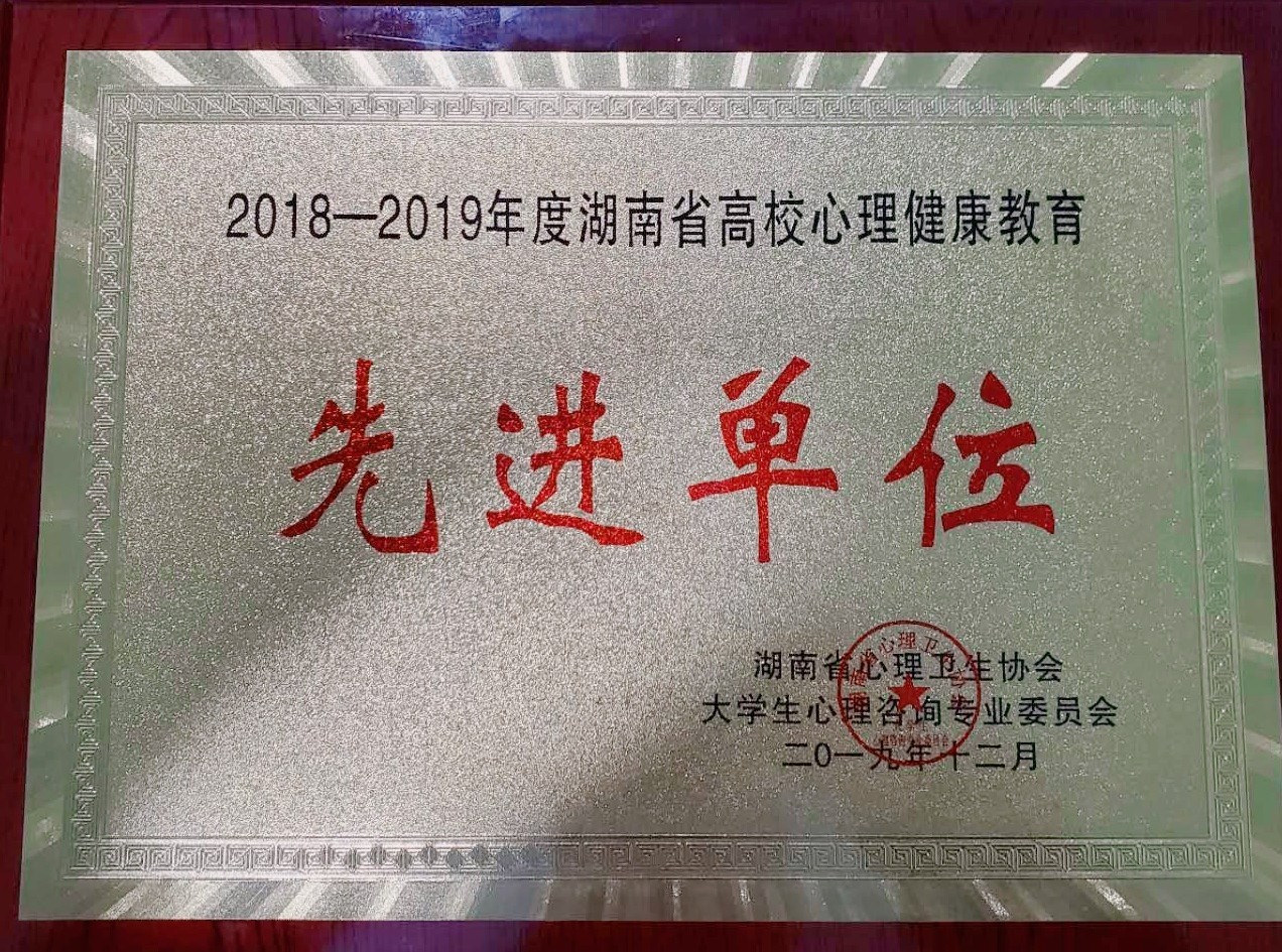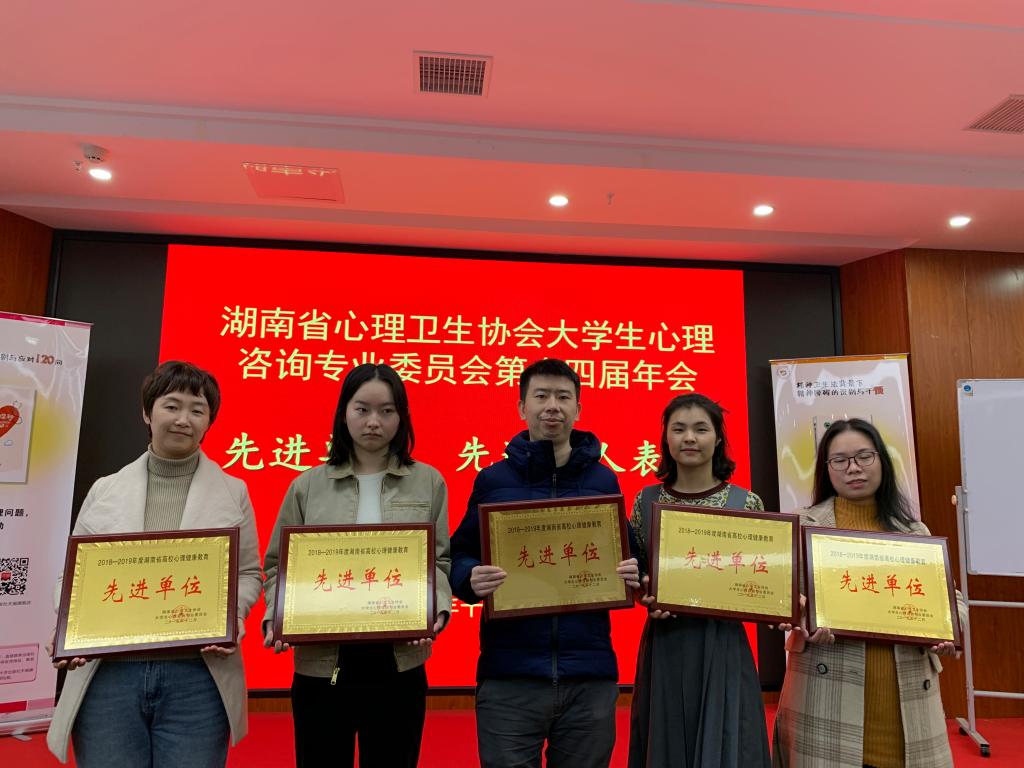 2019年12月14日至15日,湖南省心理卫生协会大学生心理咨询委员会第十四届学术年会在长沙召开。会议对湖南省高校年度先进单位和先进个人给予了表彰。我院获评2018-2019年度湖南省高校心理健康教育先进单位,院心理专干马翔老师获评湖南省高校心理健康教育先进个人。