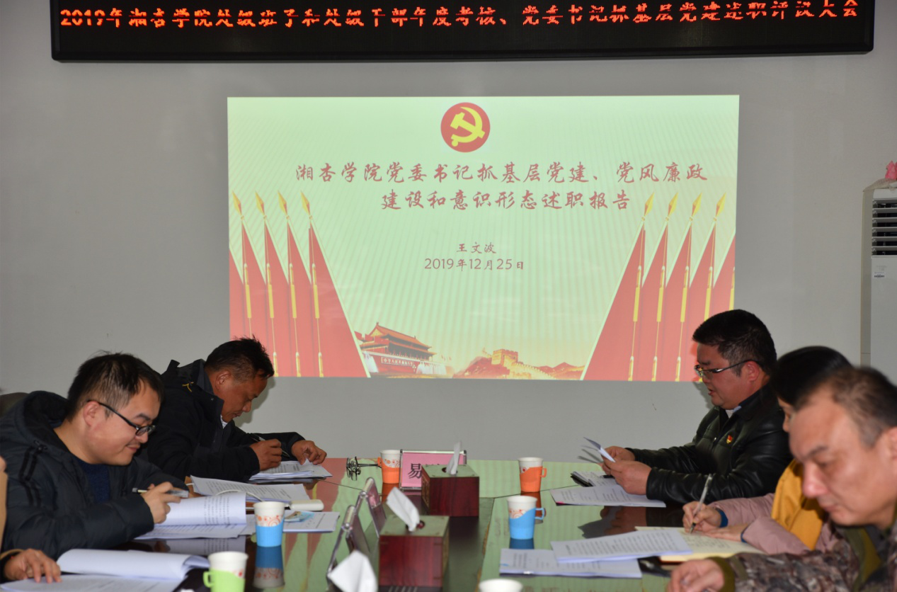12月25日下午,召开“湘杏学院2019年度党委书记抓基层党建、处级班子和处级干部年度考核述职评议会”。会议由易刚强副校长主持,学院全体教职工参会。