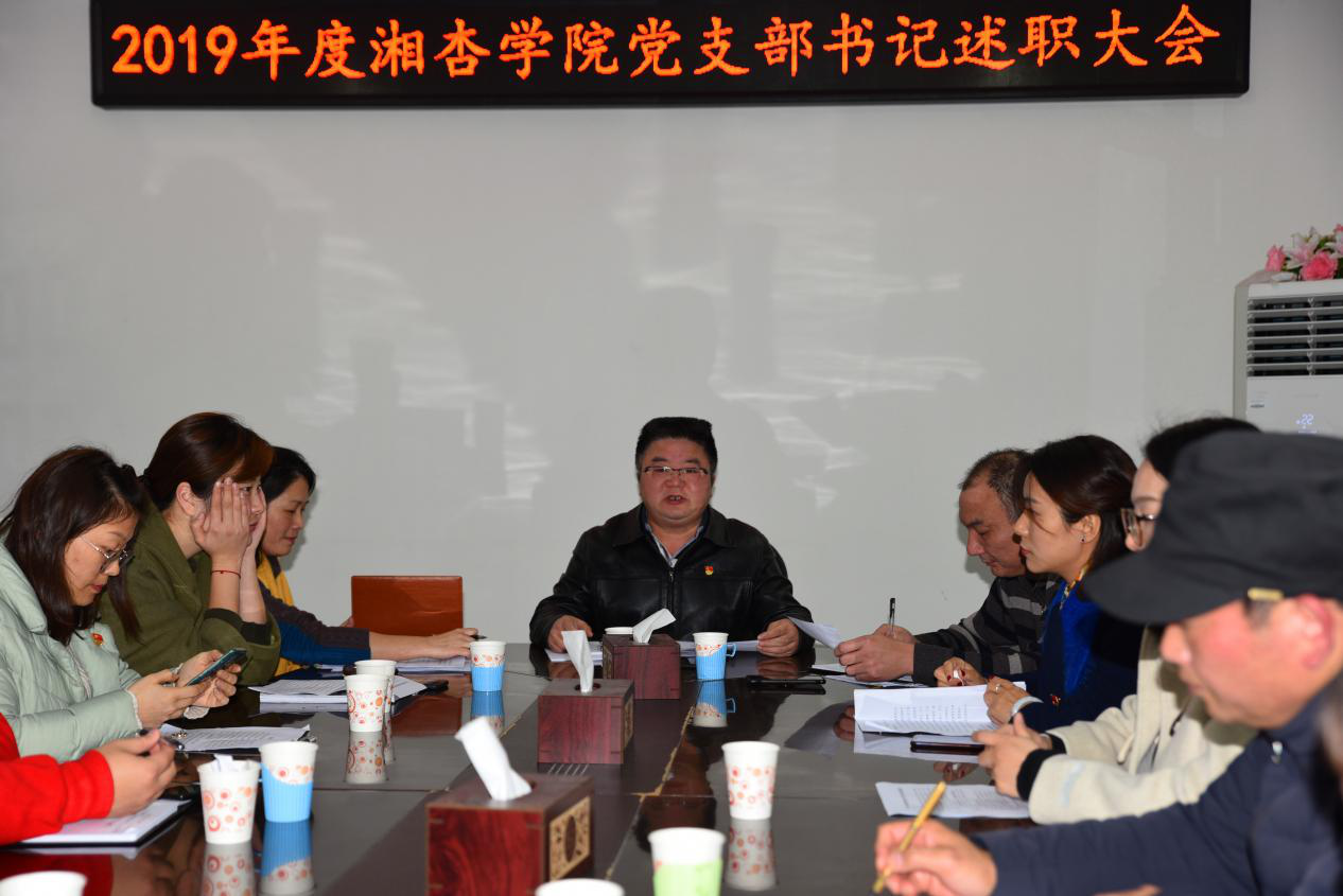 12月25日下午,湘杏学院在三楼会议室召开党支部书记述职述评大会,院党委书记王文波、院长谢辉、副书记毛芳武及湘杏学院全体职工党员参会,会议由王文波主持。