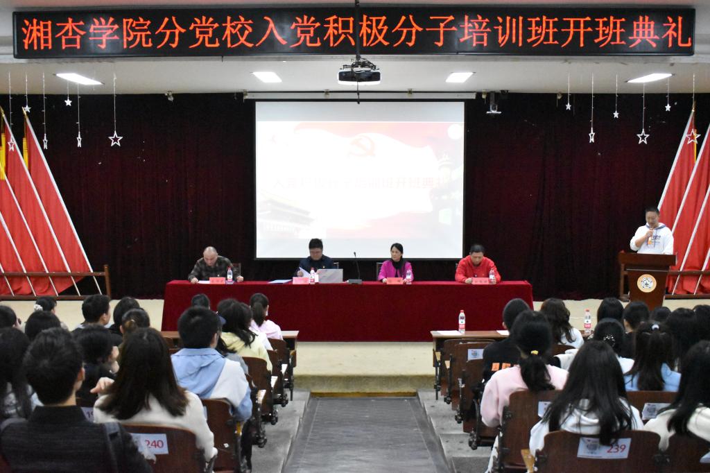 2021年4月19日19:00,湘杏学院党委党校第九期入党积极分子培训班开班典礼在湘杏学院东塘校区举行。湘杏学院院党委书记王文波、院长谢辉、党委副书记毛芳武、学生科科长刘瑞斌、副科长成宇骅以及学生科全体老师参加本次开班典礼。开班典礼由成宇骅主持。
