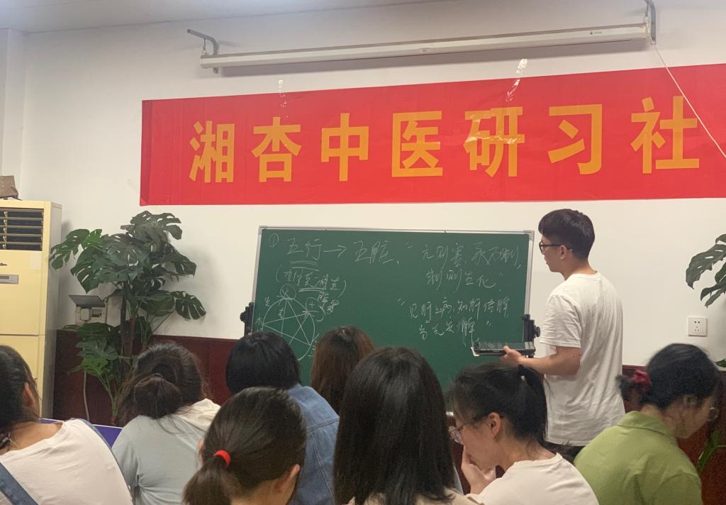 中医药文化是中华民族的瑰宝,蕴含着丰富的人文科学和哲学思想。在学院党委的指导与支持下,我院中医专业党员始终遵循习近平总书记在全国中医药大会上提出的“传承精华、守正创新”重要指示,充分发挥支部和党员的模范带头作用,深入学习研究中医药文化,立志作中医药文化的传承人。2021年5月6日晚7点,湘杏学院学院第三学生党支部全体党员于党员活动室开展了第一期研讨活动。本次活动特邀我校温病学教研室梅明老师参与指导,活动由第三学生党支部书记乔清主持。