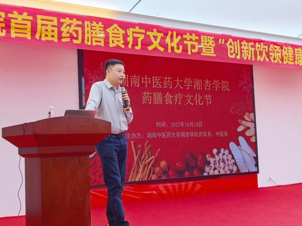 为弘扬中医药文化,提升师生及公众对药膳的认知,倡导健康生活方式,湘杏学院首届药膳食疗文化节暨创新饮领健康未来饮品创新大赛决赛于2025年10月18日在航母楼二楼会议厅举办。出席本次活动的领导有:振农集团公司董事长李娜娜女士、湖南觅食喵商业连锁有限公司总经理杨英女士、长沙康思威盛股份董事长王楚杨先生、湖南中养健康生活董事长许喆先生、湖南中医药大学肖作为教授及湘阴校区党政办副主任袁盖湖老师。本次活动在湘阴校区药学系、中医系相关老师与领导的精心组织及学工部的协助下圆满完成。
