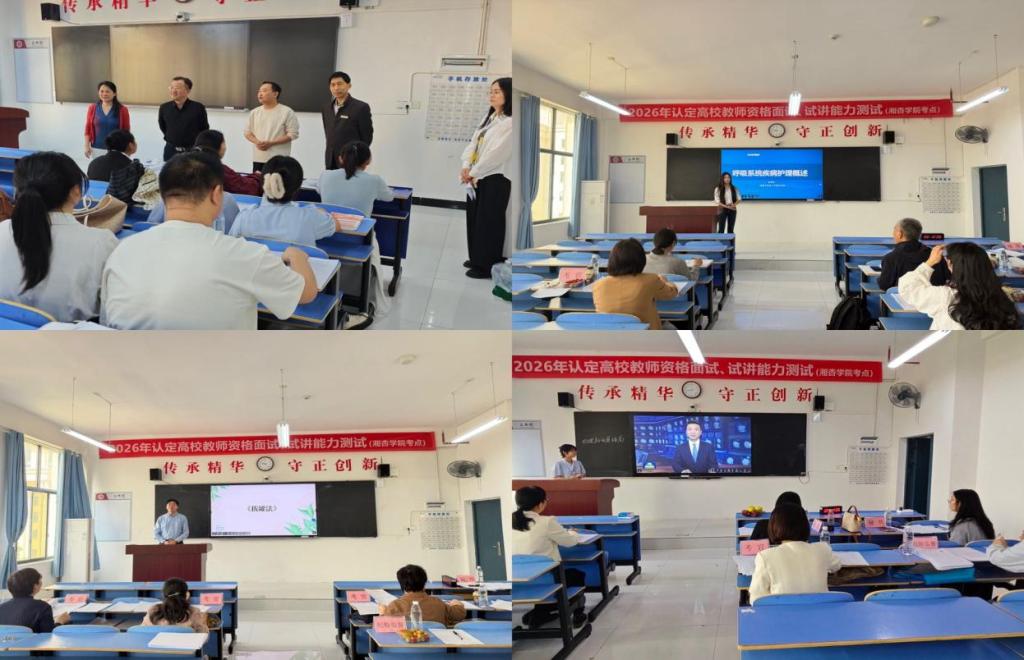 4月19日,受我院委托,湖南中医药大学教师资格认证委员会莅临我院湘阴校区,由学校组织人事部副部长余炼带队,圆满完成学院2026年高校教师资格认定面试、试讲评审各项工作。本次共有93名青年教师报名参加认定,涵盖医学、药学、经管、人文、思政、公共等多个学科专业,全程流程规范有序、组织严谨周密、纪律严明严格,高质量完成了本次教师资格认定考评任务。