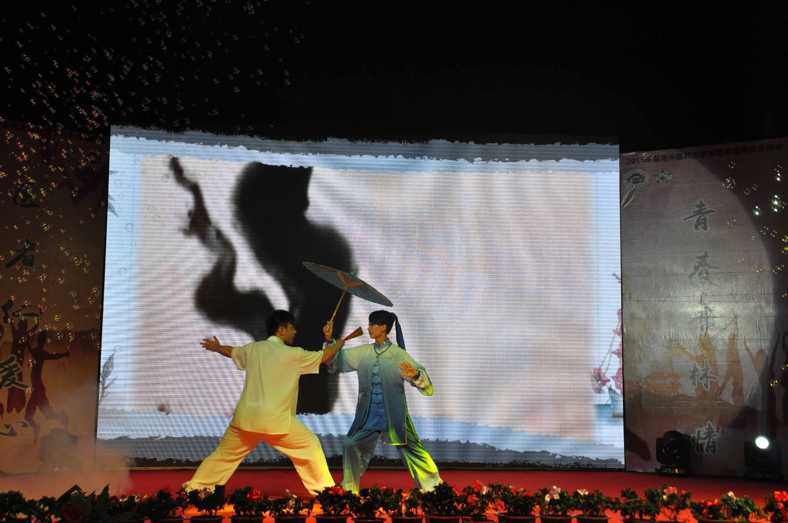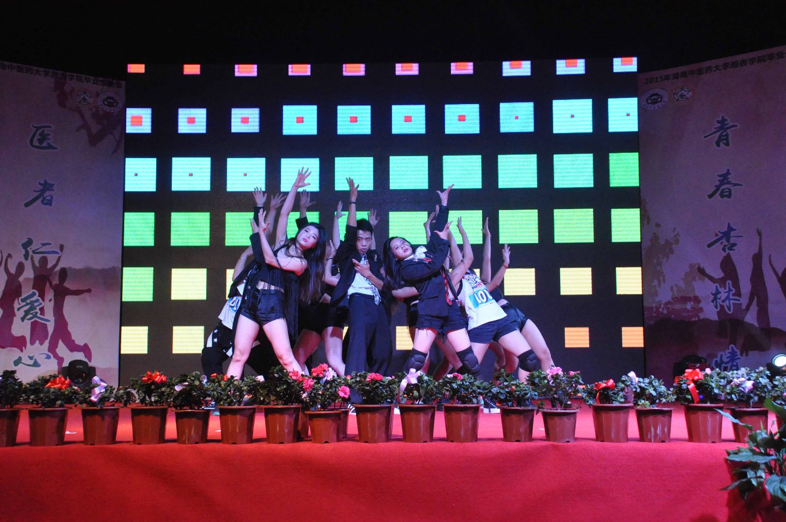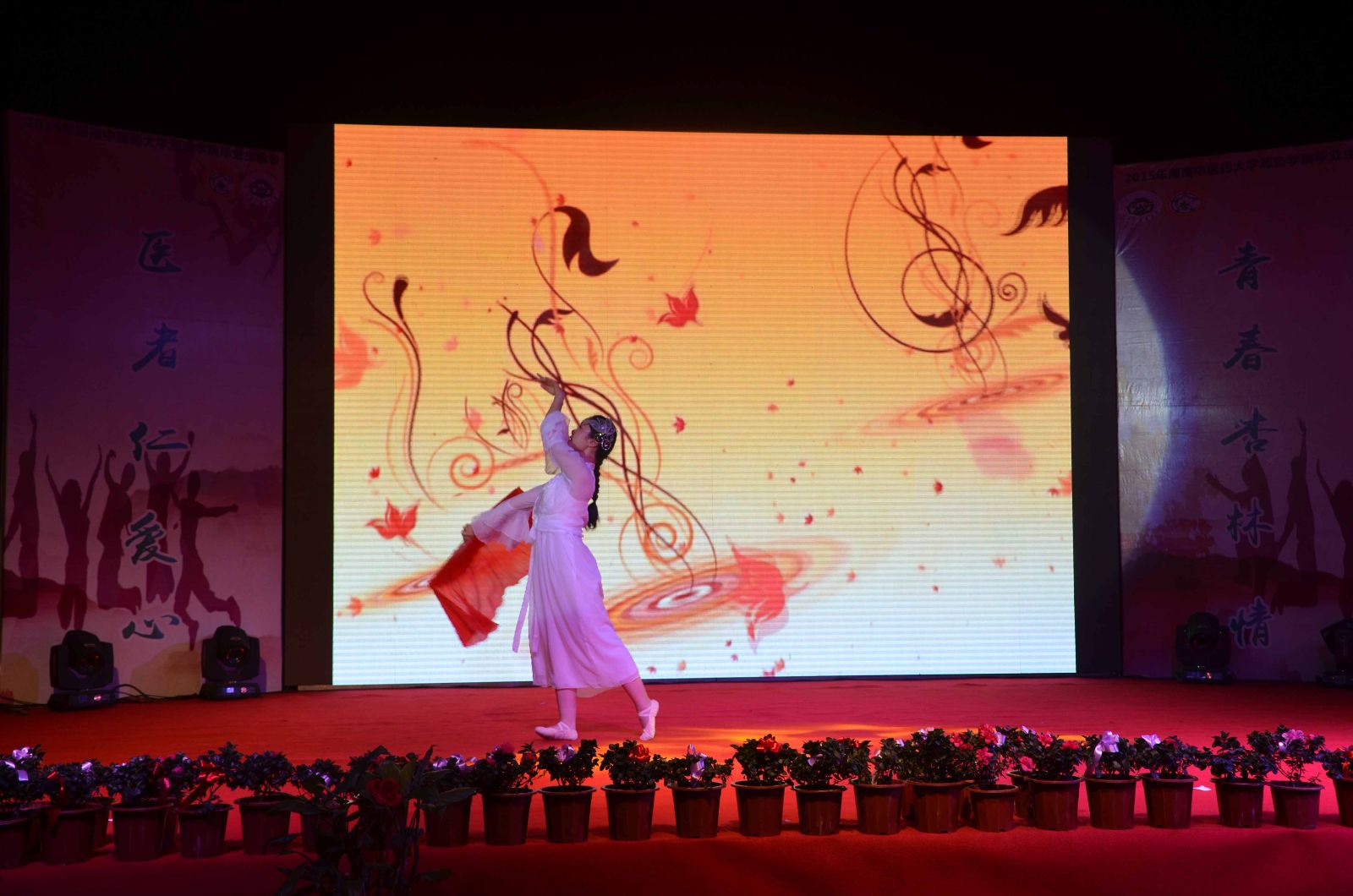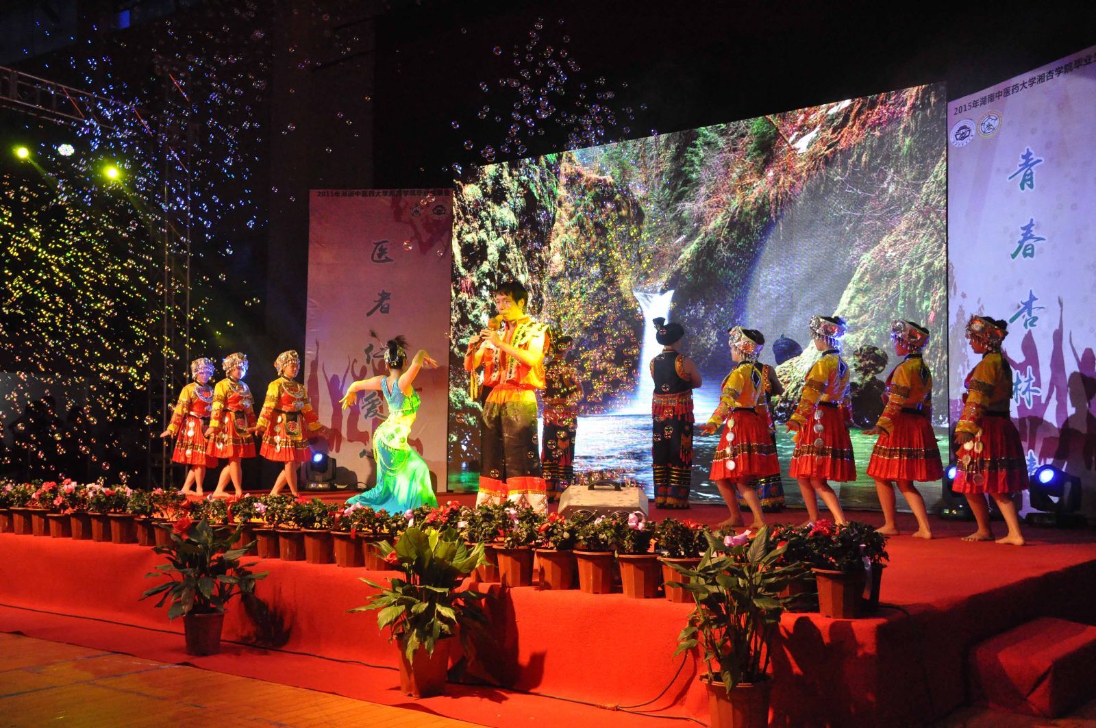 欢声笑语,吹响毕业号角;载歌载舞,镌刻离别思绪。2015年6月6日晚19:00,湖南中医药大学湘杏学院“医者仁爱心,青春杏林情”毕业生晚会在东塘体育馆隆重举行。湖南中医药大学党委副书记、校长廖端芳教授,大学党委委员、副校长、研究院副院长周小青教授,大学党委委员、副校长葛金文教授,学生工作部谭琥部长,章小纯副部长,以及湖南中医药大学校团委方圆副书记,湘杏学院李木清院长,党总支王云辉书记,党总支毛芳武副书记及学院全体老师应邀出席与湘杏学子共同观看本次晚会。