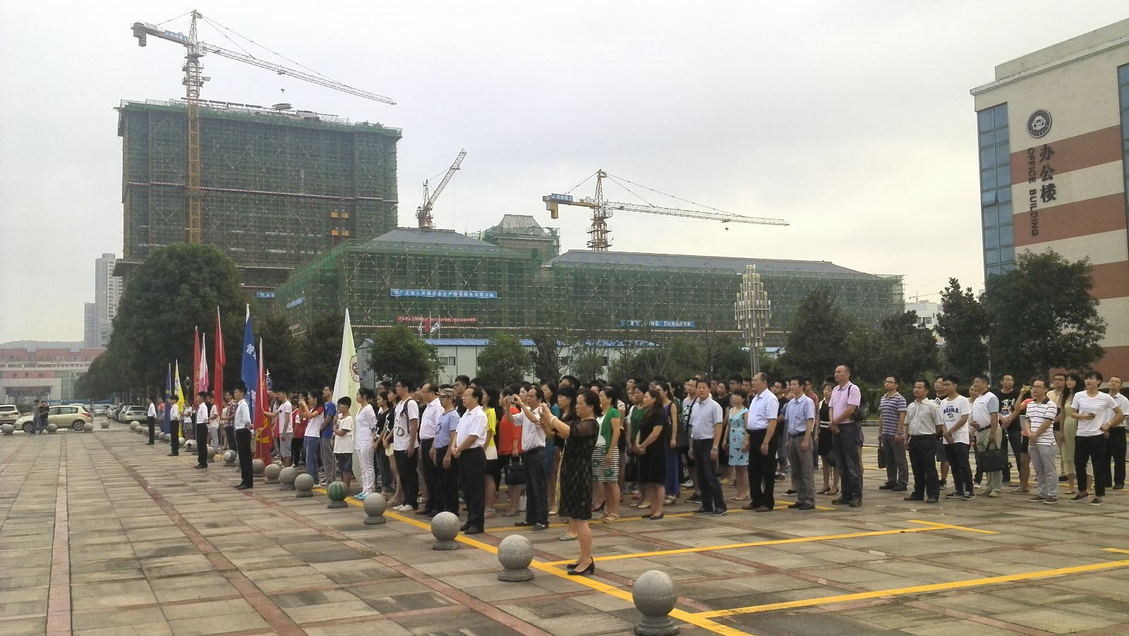 观看直播前,湘杏学院组织师生分别在含浦校区南门广场、东塘校区体育场参加了隆重的升国旗仪式。