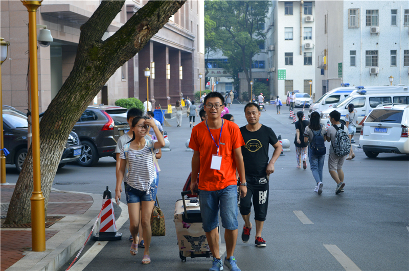 迎新现场,到处都是忙碌的身影。报到注册组、收费组、绿色通道组、宣传报道组、宿管服务组、后勤服务组、安全保卫组、医疗组等全面启动,各履其职,工作人员和志愿者们耐心地为每一位新生、家长答疑解惑,主动帮着拎行李,一路谈笑风生,让刚踏入校园生活的新生们感受到了不一样的温暖。为了让新生尽快的熟悉新环境,更快的融入新生活,志愿者还向新生们简单介绍了学校的楼层分布,为他们未来生活提出了自己切身的建议。
