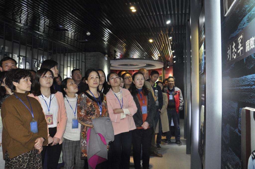 在教育基地讲解员的带领下,大家首先参观了服刑人员的生产车间及部分活动场所,亲眼目睹了森严的高墙铁窗,也对服刑人员身陷囹圄的生活有了更直观的了解。随后,大家来到警示教育展示厅,通过生动的图文记录,进一步了解了党的十八大以来,我党反腐倡廉成果以及近年来湖南省反腐的典型案例。