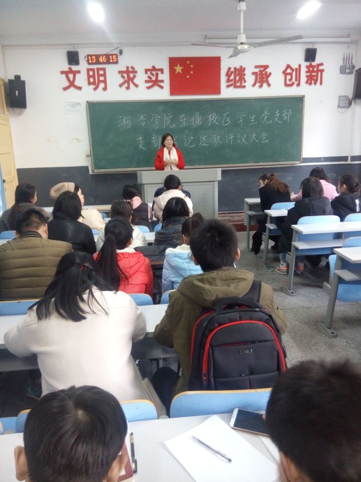 12月19日中午,湘杏学院在东塘校区教学楼13教室召开会议,开展2017年度第三、四、五学生党支部书记述职评议工作。学院党委书记王云辉同志及三个学生支部的党员参加了述职评议会。会议由学院党委书记王云辉同志主持。