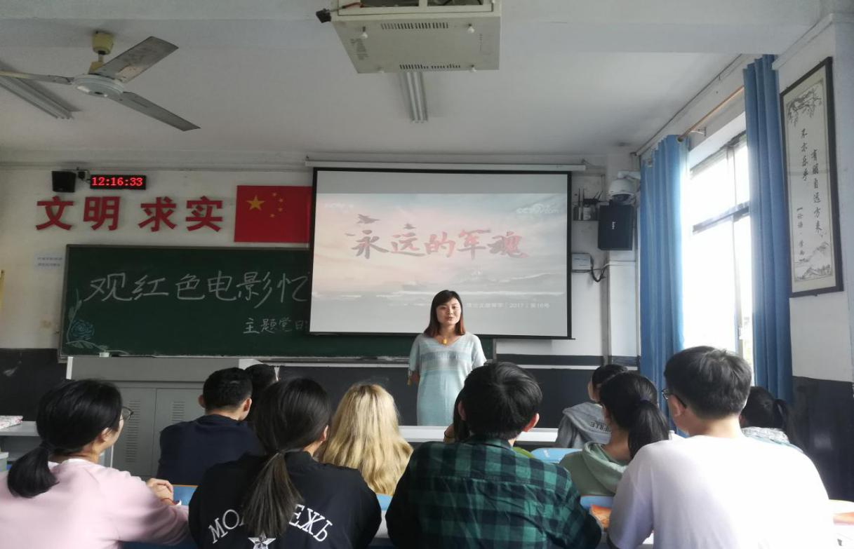 2018年9月29日-30日,湖南中医药大学湘杏学院第四、五学生党支部浏阳见习点学生党员在护理教室、第三、五学生党支部在校学生党员以及学生党支部书记陈露老师和向禧在东塘校区30教室,开展观看大型文献纪录片《永远的军魂》主题党日活动。