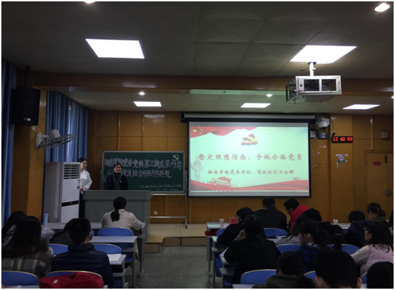 开班典礼在铿锵有力、激动人心的中华人民共和国国歌中拉开序幕。学院党委书记、党校校长王云辉同志为培训学员做主题为“坚定理想信念,争做合格党员”的报告。报告中说:截止2017年中国共产党党员人数为8956.4万,其中大专以上学历的党员4326.6万名,占48.3%。这种情况表明了党的威信和吸引力,足以令我们骄傲和自豪。但同时我们也不应忘记,随着党员队伍越来越壮大,管党治党、全面从严治党的任务也更加艰巨,因为决定党的战斗力和凝聚力的,不仅是党员数量,更重要的是党员的质量。她在报告中讲述了三个方面的内容:第一党员质量问题,关系党和国家的前途命运,集中培训是严把党员“入口”质量关的重要保证。她希望通过集中培训,切实提高新党员的质量,严把党员“入口”质量关,从源头上保证党的肌体健康。第二,加强理论学习,端正入党动机。加强理论学习,是端正入党动机,增强党性修养的必要条件。所有的学员不仅要认真学习党的基本理论、基本纲领、基本路线及习近平新时代中国特色社会主义思想,而且要做到真学真懂真信真用,从而坚定相信党、跟党走的决心和信念。第三,加强党性修养,坚定理想信念,做合格党员。学员们要通过扎实学习茁壮成长,要用高尚的情操来强化自我约束力。做政治合格、执行纪律合格,品德合格,发挥作用合格的合格党员。牢记历史使命,为实现中国梦努力奋斗。