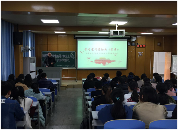 开班典礼圆满结束后,由我院党委副书记、党校副校长毛芳武同志讲授第一堂培训课——“学习宣传贯彻新《中国共产党章程》·做习近平新时代中国特色社会主义思想的践行者”。他紧扣习近平总书记党的十九大精神,从党章的发展历程、十九大党章修改的主要内容、十九大修改《中国共产党章程》的重大意义,以及如何学习践行党章,争做合格党员等四个方面为学员进行细致讲解,并对以后大学生党员如何在生活、学习、工作等各方面永远保持共产党员的先进性,发挥了先锋模范作用提出了希望和要求。