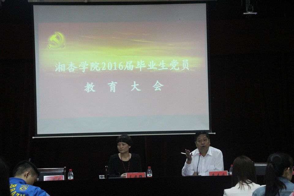 5月28日上午,湘杏学院2016届毕业生党员教育大会在东塘学术报告厅举行。院长、党总支副书记李木清,党总支书记王云辉,第一学生党支部书记王艳,第五学生党支部书记陈露出席了此次大会。2016届全体毕业生党员参加了会议。