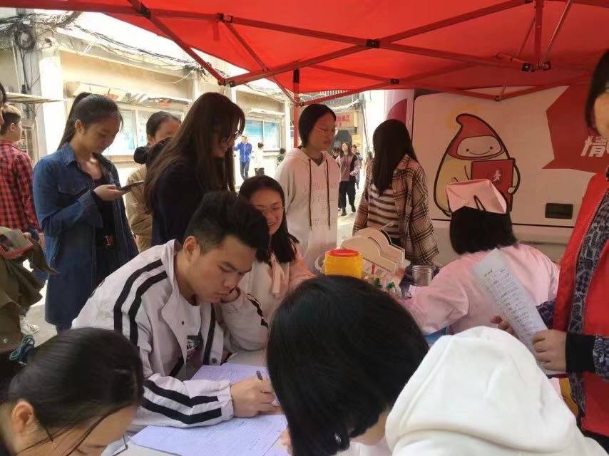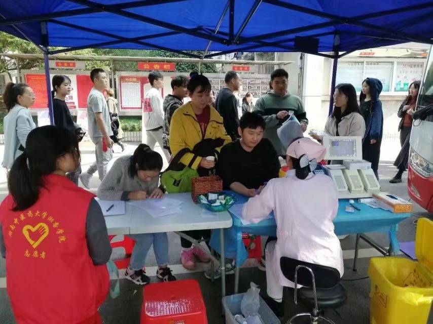 2019年11月7日至8日湖南中医药大学湘杏学院社团部青年志愿者协会协同长沙市血液中心在我院林荫道举行了以“无偿献血,传递爱心”为主题的献血活动。活动当日,工作人员现场宣传国家有关义务献血政策,解答献血者提出的问题。在工作人员的指导下,献血者们井然有序地按献血流程,进行登记、体检、采血和领证。在为期两天的献血活动中,共有114位献血志愿者献出自己的一份爱心。