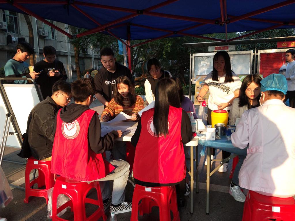 此外,青年志愿者协会协同长沙市血液中心在林荫道展开为期3天的献血活动。献血移动站一建立,就迅速得到了全院学生的积极响应。很多同学在报名处咨询献血的相关事宜,并且在志愿者的帮助下填写报名表和个人信息表。工作人员也为他们进行血压测量、化验血型等基本检测。每位工作人员和青年志愿者对待工作始终热情认真,尽职负责。在为期3天的献血活动中,共有上百余人志愿献血,甘于奉献的他们,不仅是用自己的热血在拯救同胞的生命,更是用自己的博大情怀在倡导助人为乐的社会风尚,他们不怕疼、敢为人先的先锋精神值得我们看齐。