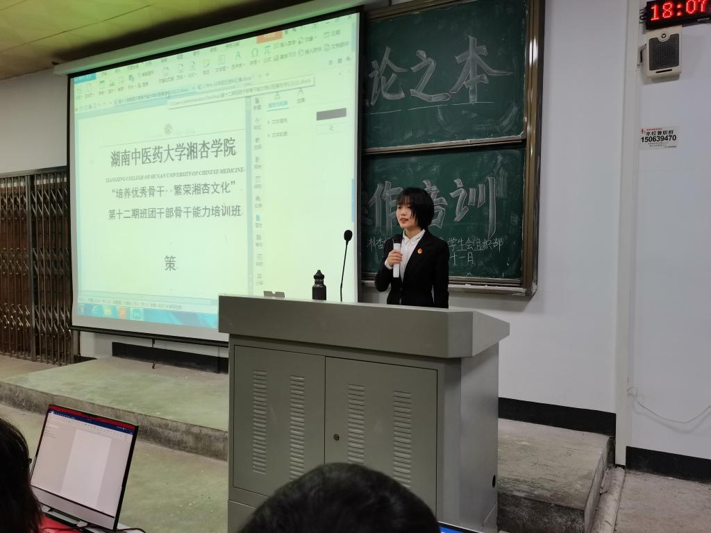 为使班团干部尽快熟悉办公软件的操作,提高自身素质和组织管理能力,并组建一支具有凝聚力的先锋队伍,2020年10月21日19:00,由湘杏学院第十六届团委学生会组织部承办的第十二期班团干部骨干能力培训班之office办公软件操作培训在东塘校区51教室举行。2019、2020级班团干部和学生会成员参与此次活动。