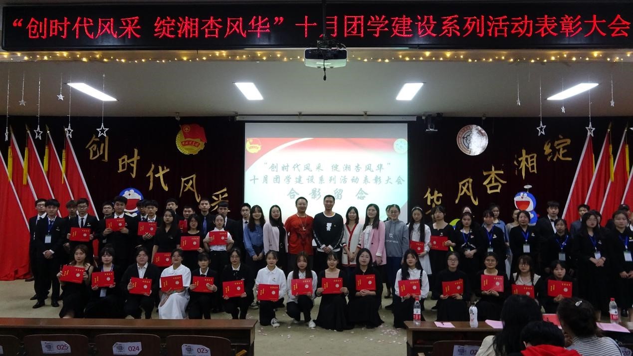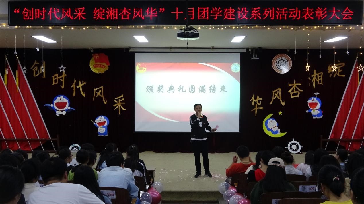 为展现当代大学生风采,丰富同学们课余文化生活,更好地推进校园文化建设,2020年11月18日19:00湘杏学院第十六届团委学生会生活部于东塘校区学术报告厅举办了“创时代风采 绽湘杏风华”十月团学建设系列活动总结暨表彰大会。出席本次活动的有学生科科长刘瑞斌老师、学生科副科长成宇骅老师、团委书记赵思路老师、学生科向禧老师、学生科王毅老师、学生科乔清老师、学生科王莎莎老师、以及东塘校区学生代表。