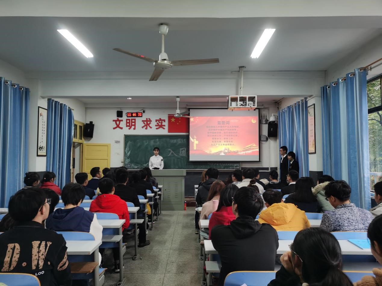 为了加强团员意识教育,规范入团途径,进一步扩大共青团员在青少年群体中的影响力,由湘杏学院第十六届团委学生会组织部承办的“爱国信念驻心中 红色基因代代传”之新团员入团仪式于2020年11月24日中午12:30在东塘教学楼13教室举行。出席此次活动的有院团委书记赵思路老师、主席团成员以及26名新团员。