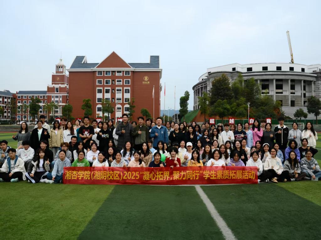 为锤炼学生干部综合素养,凝聚团队向心力、增强集体归属感,2025年11月2日上午,湖南中医药大学湘杏学院(湘阴校区)第四届团委、学生会全体成员于田径场成功开展“凝心拓界,聚力同行”主题素质拓展活动。团委老师代表及2025级学生辅导员受邀参与,与全体成员共同完成多项协作挑战,并在互动中寄语青年学子,共促成长发展。