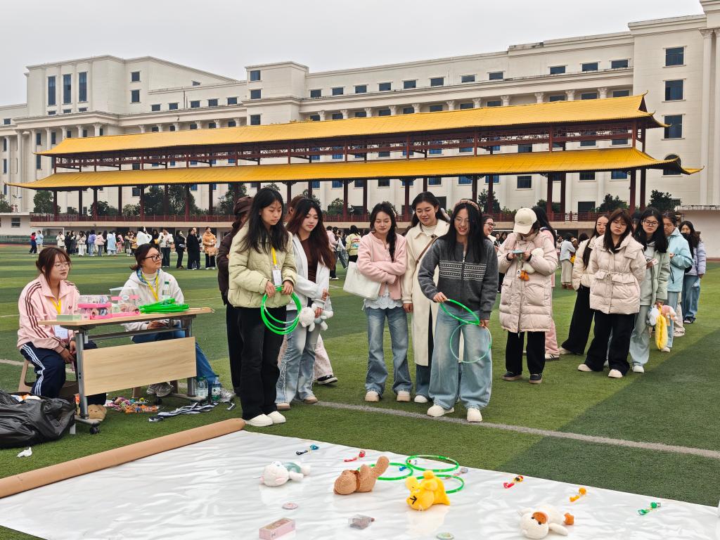 本次活动以“套圈闯关+集章打卡”的形式展开,共设置六个趣味套圈摊位。每成功套中奖品,即视为该摊位挑战胜利,由工作人员盖章确认。活动现场气氛热烈而有序,套圈在空中划出优美的弧线,掌声与笑声交织成春日校园最动人的乐章。活动结束后,全体工作人员共同清理现场、整理物资并进行简短总结,为本次女生节画上圆满句号。