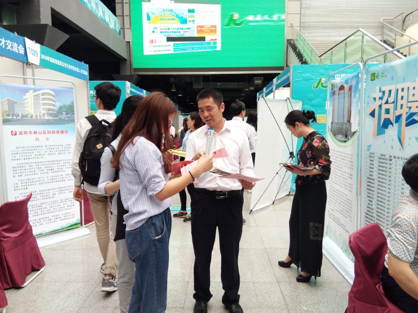 为促进我院医药卫生类毕业生顺利就业,方便用人单位选聘人才,更好地为用人单位与毕 业生搭建双向选择的平台,4月17日上午9点,在湖南中医药大学阳光服务平台二楼招聘厅举行了湖南中医药大学湘杏学院2018届毕业生小型招聘会。学院领导十分重视这次招聘会,学生科科长、副科长以及就业办老师亲临会场指挥并与用人单位和毕业生交流。