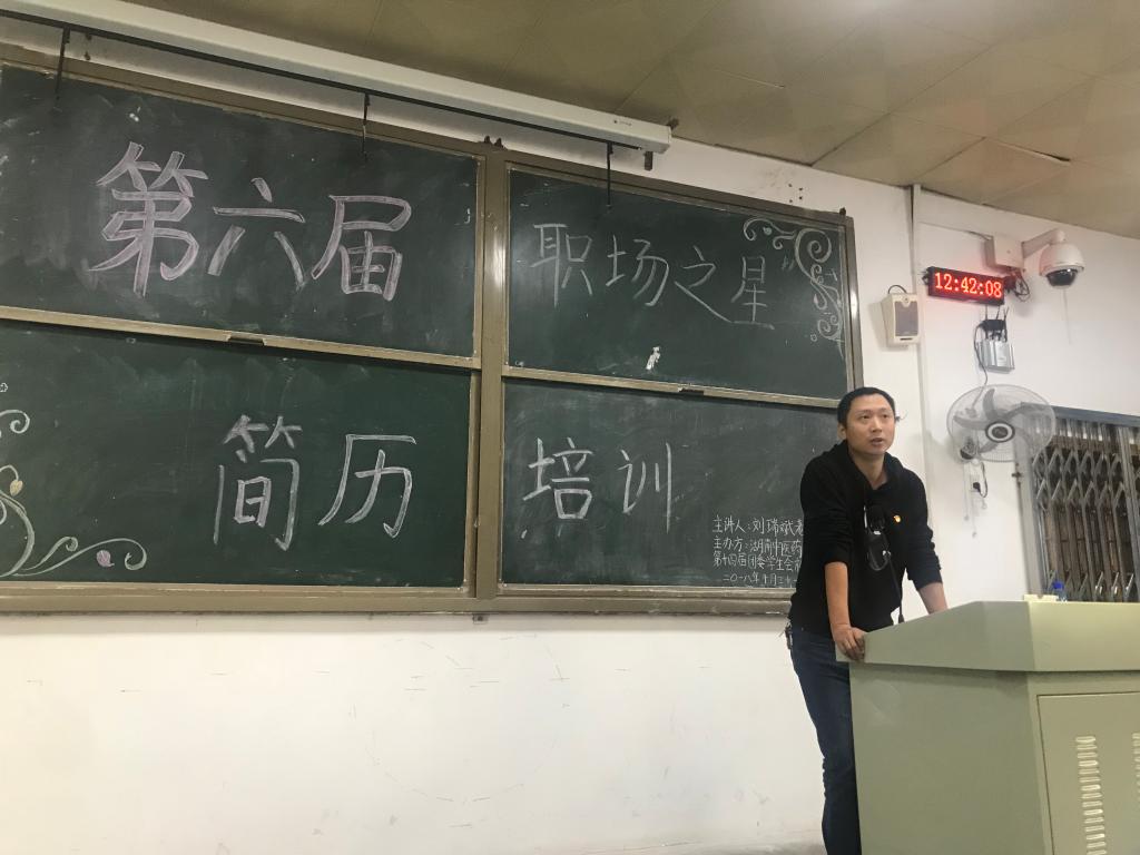 2018年10月31日中午12:30,由我院就业创业服务中心主办的第六届“职场之星”大赛之简历培训在湘杏学院东塘校区51教室顺利举行。学生科科长刘瑞斌老师担任本次讲座的主讲嘉宾,学生科陈露老师也受邀参加了本次讲座,我院东塘校区全体同学及部分实习生积极参加了本次培训会。