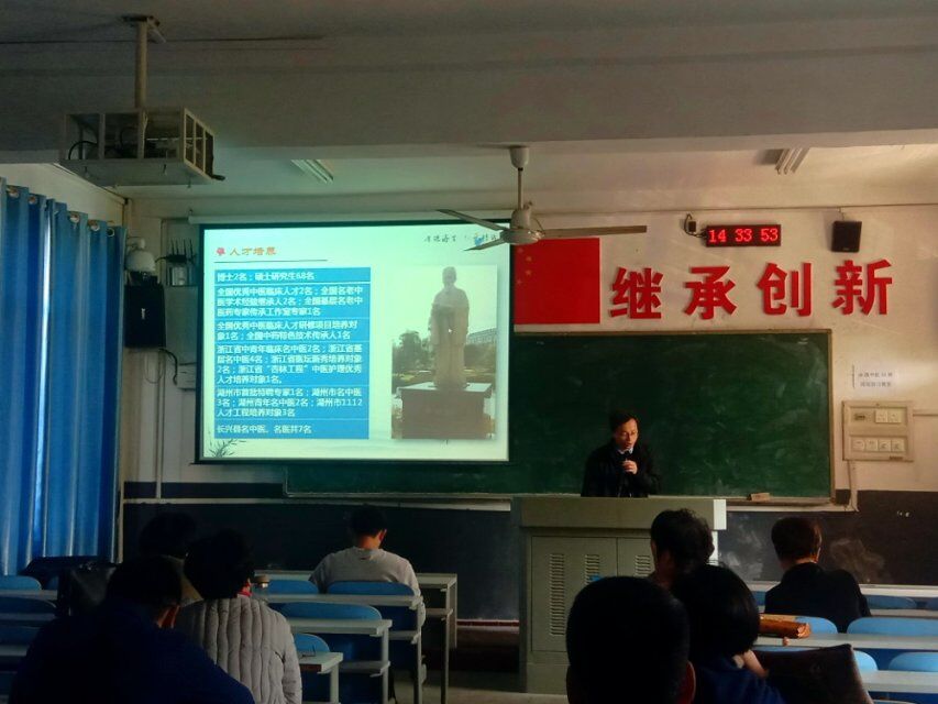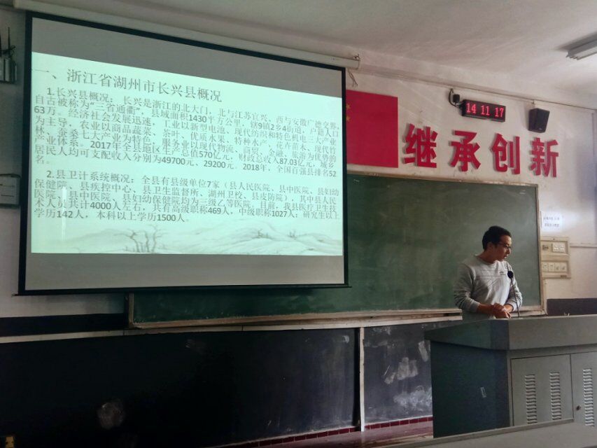 2018年11月24日下午 ,浙江省长兴县卫生和计划生育局携长兴县中医院等7家医疗卫生单位在湘杏学院东塘校区27教室召开专场宣讲招聘会。