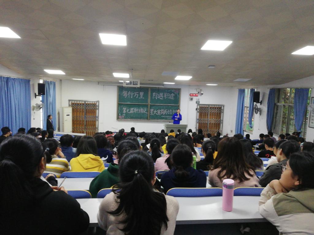 2019年10月25日中午,以“笃行万里 际遇职途”为主题的第七届“职场之星”大赛简历培训在51教室如期举行。我部特邀学生科长刘瑞斌老师担任此次简历培训的指导老师,为在场200多名学生进行指导,让同学们了解更多制作简历的技巧,以便为将来的求职之路打下坚实的基础。