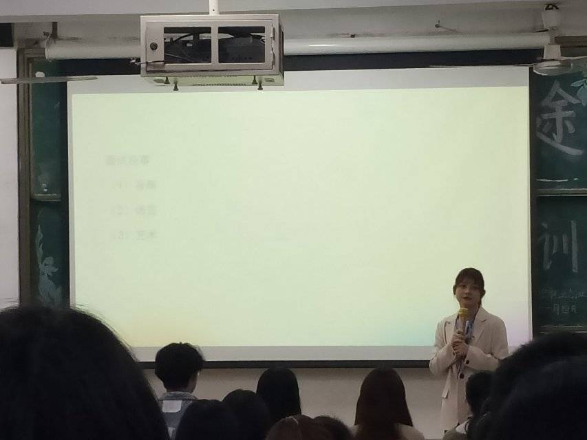 活动伊始,李佩老师询问在场同学“面试是什么”,同学们的回答各种各样,各有道理,李佩老师表示她认为面试就像是“谈恋爱”,是一个互相了解的过程。接下来,李老师详细讲解了面试知识。第一个内容是围绕面试者形象展开,李老师提出了男女生面部妆容要求、着装要求等。第二个内容为自我介绍,包括对时间、内容、职业、岗位、需要的把控,李老师特别指出内容方面需从大学的学习、生活、活动、工作、思想上充实。第三个内容是面试技巧,面试时要学会运用语言巧妙回答问题,以及正确运用手势和消除自身紧张感。第四个内容则为基本礼仪,李老师强调了面试过程中的小禁忌,比如:拒绝太多小动作。讲解知识时,李老师不仅以幽默而载满知识的话语吸引着同学们的目光,而且用风趣活泼的肢体语言带领学生沉浸在学习海洋之中。
